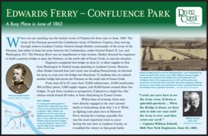 Between June 25 to June 27, 1863, 90,000 Union soldiers crossed the Potomac River on their way to the Battle of Gettysburg. This sign, designed by historian Craig Swain for River Creek’s Confluence Park, commemorates the event. The sign was unveiled on the date and the location that these events occurred 158 years earlier.  Link to the Unveiling Video  Link to Craig Swain’s Commemoration before a group of 50 River Creek residents.  About Craig Swain